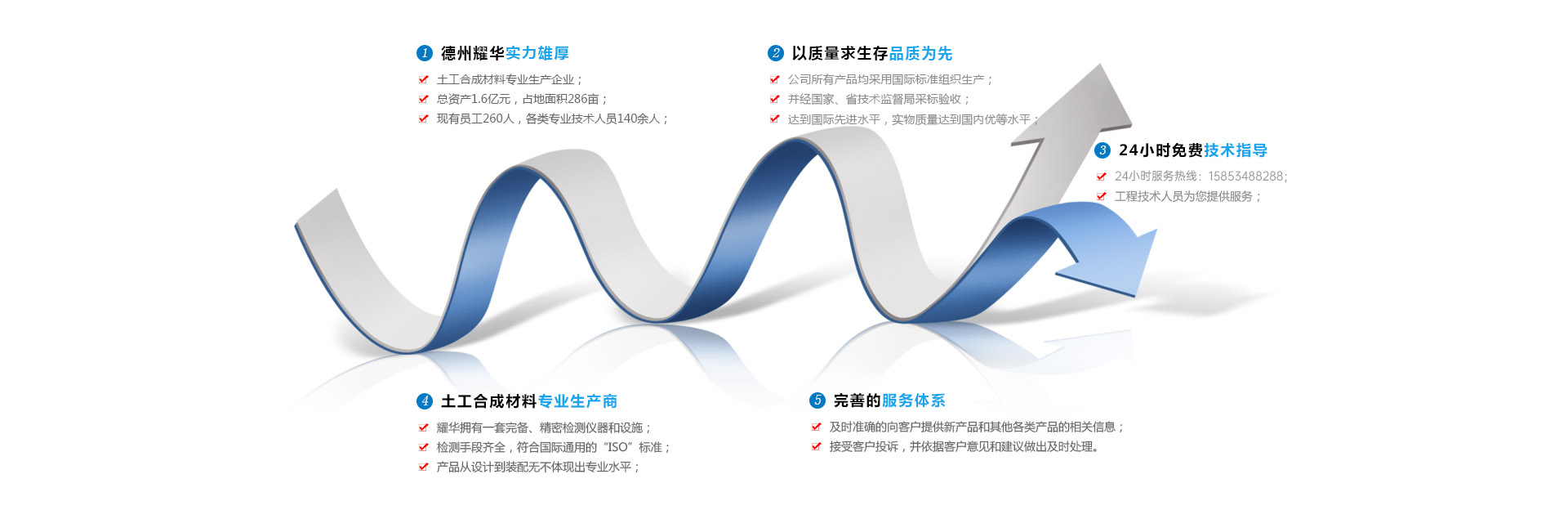 德州耀華土工材料有限公司是目前全國較大、品種其全的土工合成材料專業(yè)生產(chǎn)企業(yè),主要產(chǎn)品有復(fù)合土工膜、HDPE土工膜、長絲土工布、防草布、防水土工布、水庫防滲膜、防水板、生態(tài)袋、三維復(fù)合排水網(wǎng)、長絲機織土工布、EVA土工膜、無紡布、6.2m寬幅短纖針刺無紡布、6.0m寬幅土工膜、復(fù)合防水板、6.0m幅寬長絲土布等。本公司有年產(chǎn)萬噸滌(丙)短纖維兩用生產(chǎn)線、無紡布、PE防水板、復(fù)合膜等10余條生產(chǎn)線,工藝技術(shù)先進。HDPE土工膜、復(fù)合土工膜價格低廉...【更多】